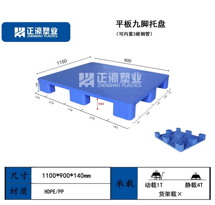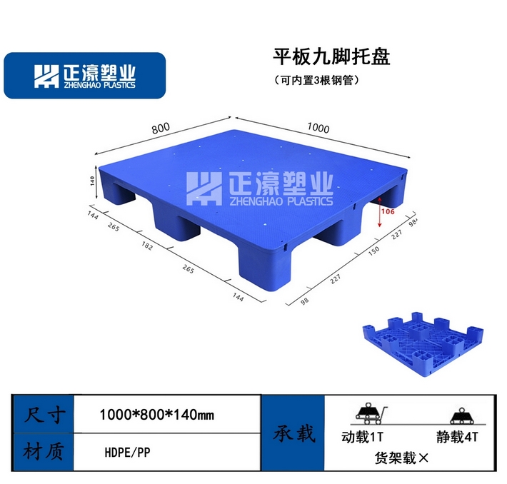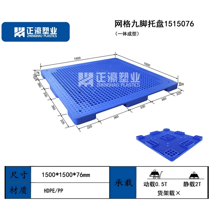 規格尺寸從1000mm-1600mm,高度由76mm-170mm,能制造多種類型的托盤