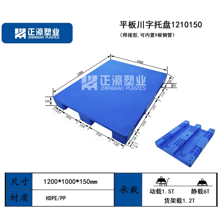 1200*1000*150川字平板焊接內置9根鋼管塑料托盤